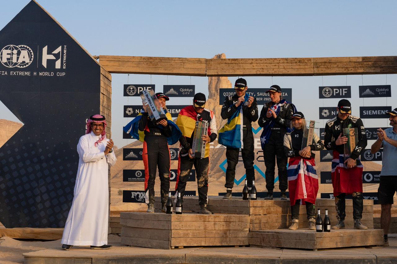 جاء تنظيم كأس العالم FIA Extreme H ليجسد التزام المملكة بتعزيز مفاهيم الاستدامة والمساواة في الرياضة، إذ يضم كل فريق سائقاً وسائقة يتنافسان على قدم المساواة، في خطوة تعكس القيم التقدمية لرياضة المحركات الحديثة. وعلى مدار ثلاثة أيام من المنافسات، تألقت فرق متعددة؛ حيث فاز Team KMS بأول ميدالية في سباقات تحديد الزمن، وحقق STARD انتصاراً في المواجهات المباشرة، قبل أن يختتم جميل لرياضة المحركات البطولة بالفوز بالسباق النهائي والتتويج باللقب العالمي الأول.