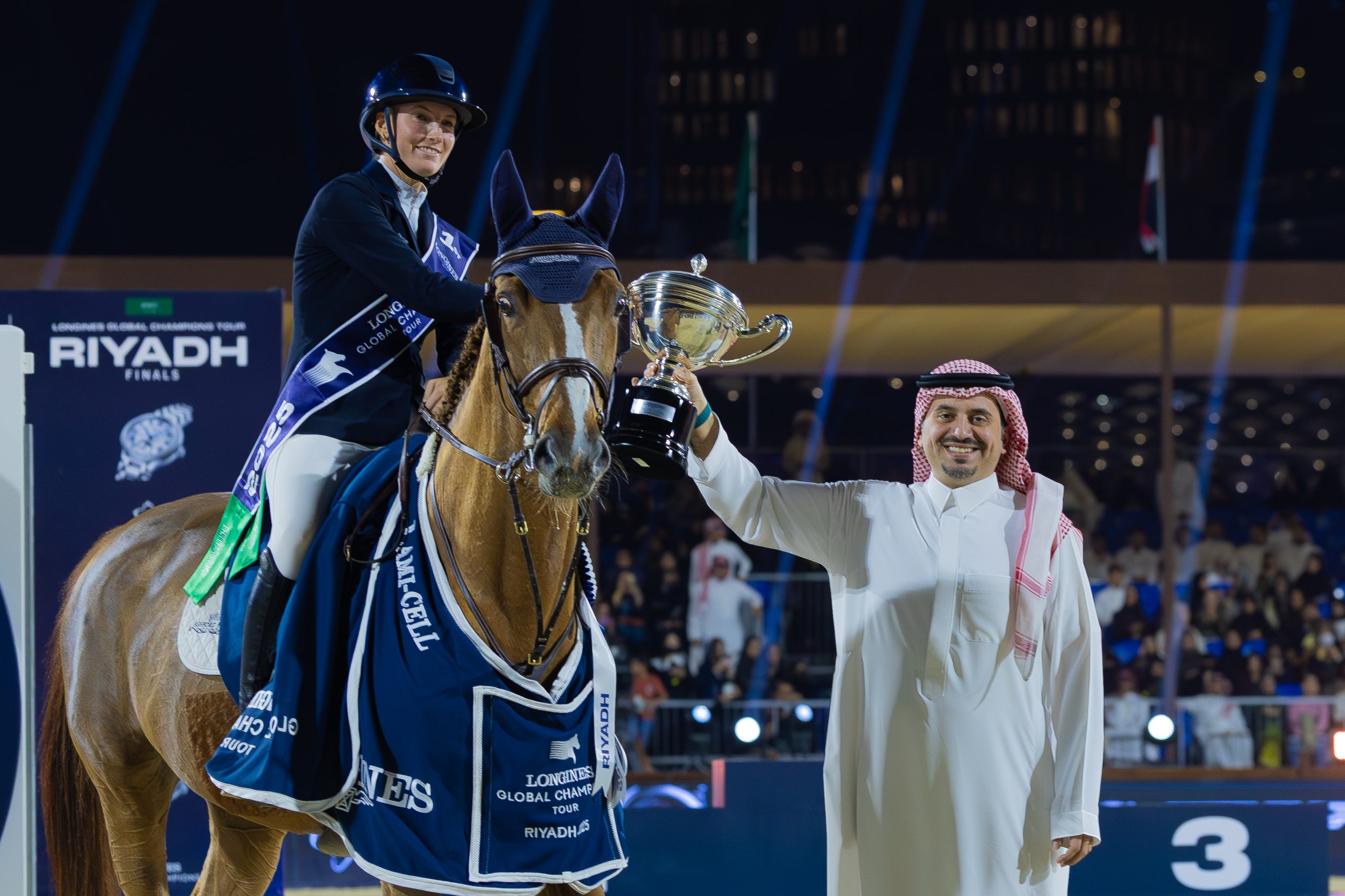 نيابةً عن صاحب السمو الملكي الأمير عبدالعزيز بن تركي الفيصل، وزير الرياضة، رئيس اللجنة الأولمبية والبارالمبية السعودية، توّج سمو نائبه الأمير فهد بن جلوي بن عبدالعزيز بن مساعد، الفارسة يانا وارجيرز بطلة جولة الرياض الختامية من بطولة لونجين العالمية للأبطال 2025، وذلك بحضور صاحب السمو الأمير عبدالله بن فهد بن عبدالله، رئيس الاتحاد السعودي للفروسية.