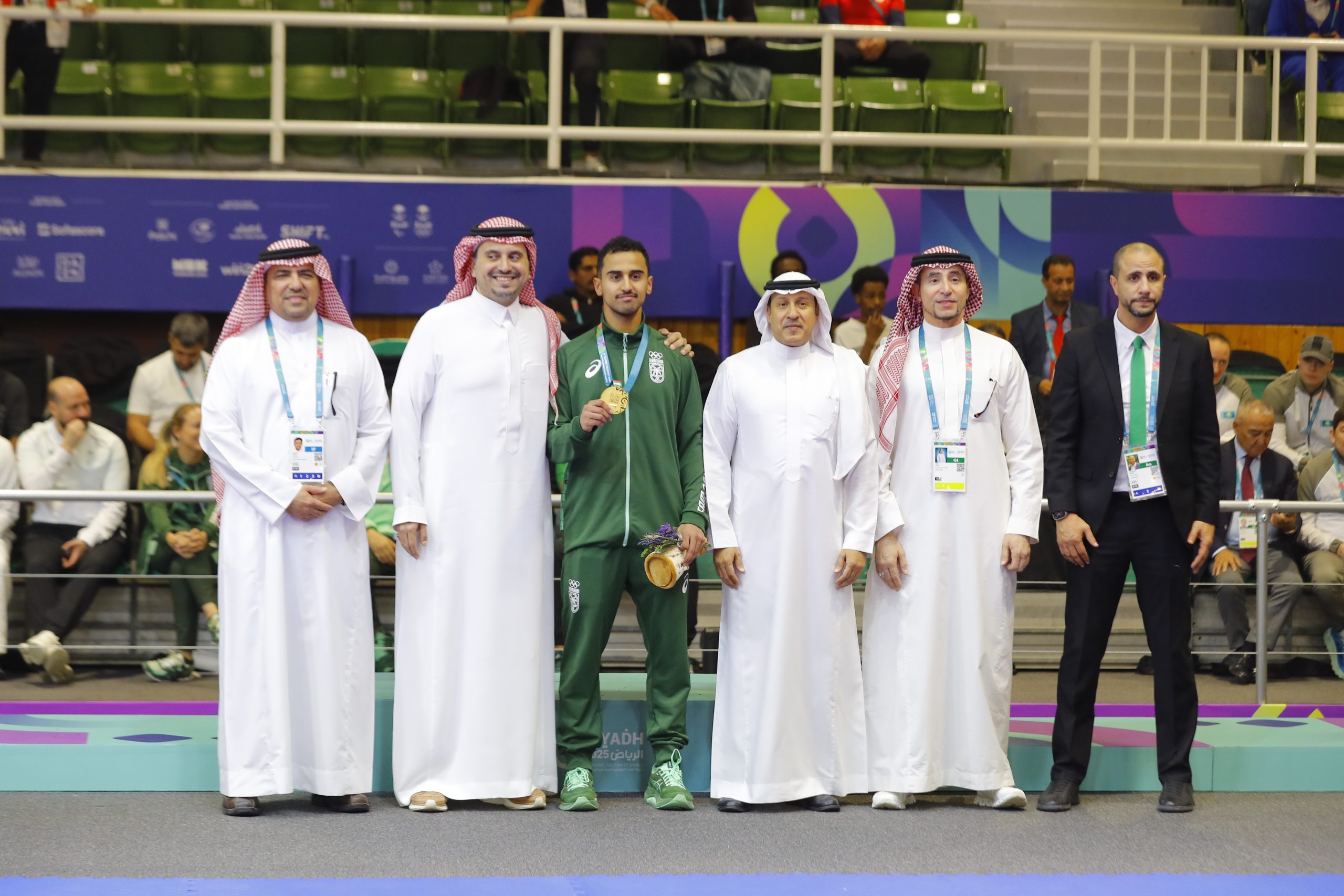 توج الأمير فهد بن جلوي، رئيس اللجنة العليا المنظمة لدورة ألعاب التضامن الإسلامي السادسة (الرياض 2025)، اليوم الأربعاء، أبطال منافسات الكاراتيه في مدينة الأمير فيصل بن فهد الرياضية.