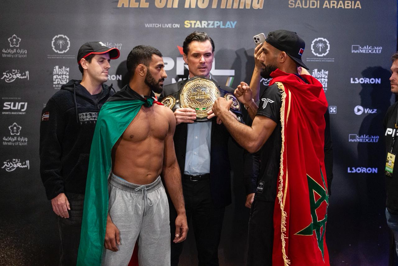 وأكد صلاح الدين هاملي أن المغرب يملك طاقات كبيرة تستحق منصات التتويج، معبّراً عن عزيمته في رفع الحزام ليكون أول مغربي يفوز بلقب PFL MENA، وإنه لا يفضل الكلام كثيراً لأن أداءه داخل القفص هو لغته الأقوى.ووجه العراقي محمد فهمي رسالة مؤثرة للجمهور قال فيها إن تأهله حتى هذه اللحظة جاء بفضل دعهم، وأن هذا النزال سينتهي مثل النزالات السابقة بشكل سريع وبالإخضاع.