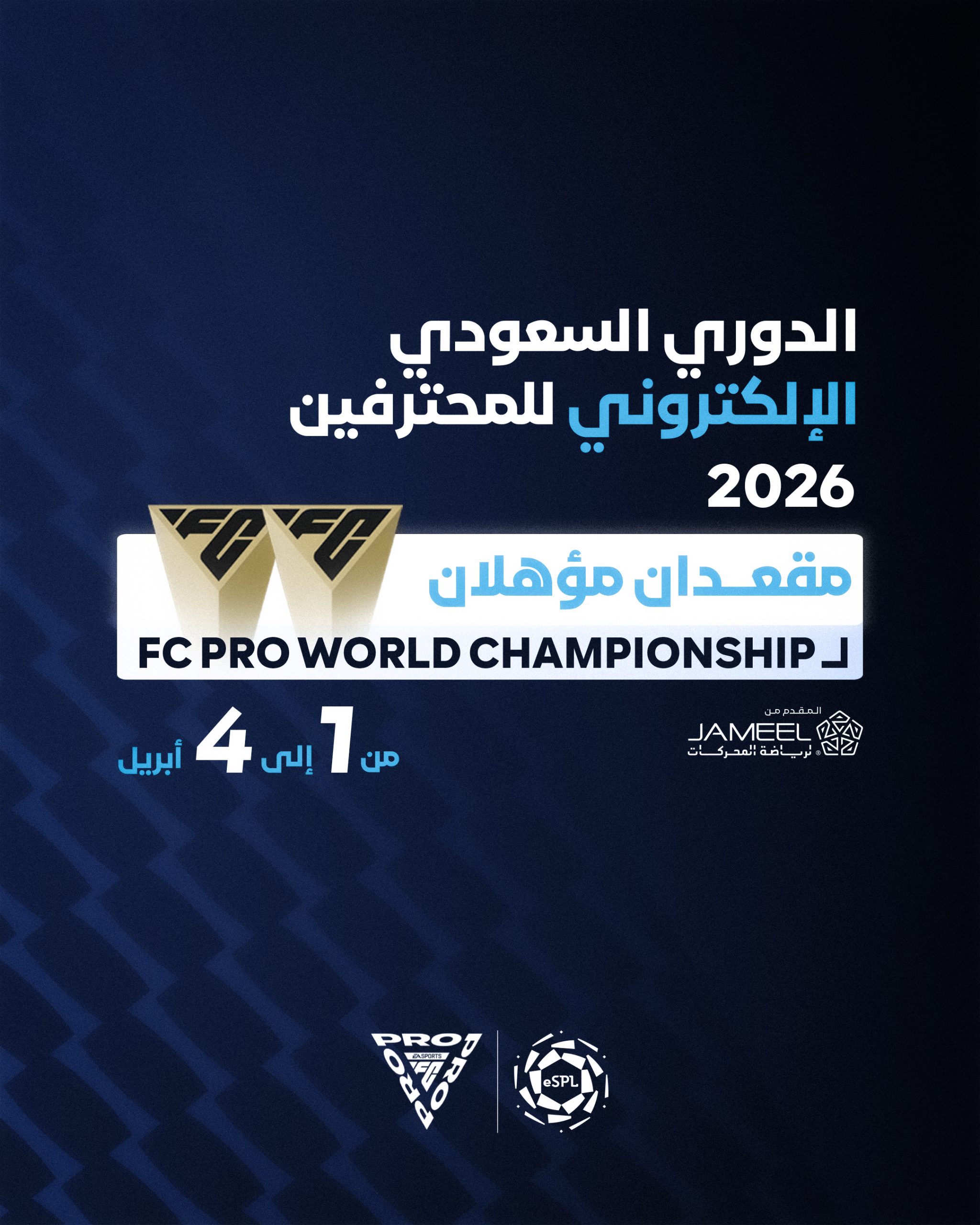 : أعلنت رابطة الدوري السعودي للمحترفين عن عودة الدوري السعودي الإلكتروني للمحترفين eSPL 2026 الدوري المؤهل لبطولة كأس العالم FC Pro World Championship حيث تتنافس أندية دوري روشن السعودي على لقب البطولة، فيما يتنافس اللاعبون المشاركون على المقعدين المؤهلين مباشرة إلى بطولة كأس العالم، إلى جانب جوائز مالية تبلغ مليون ريال سعودي.
